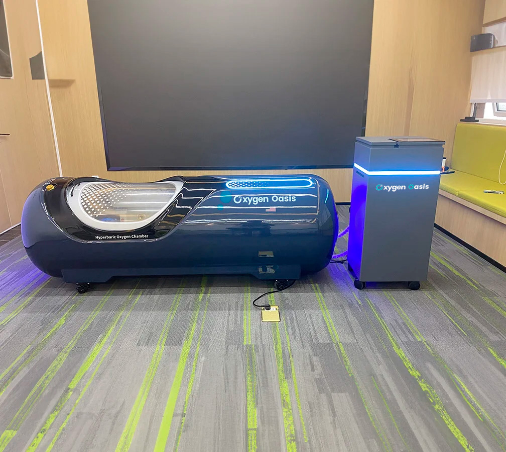Our chambers are equipped with transparent viewing ports, allowing for external monitoring and reducing feelings of claustrophobia. It includes advanced controls for precise pressure and oxygen level adjustments, ensuring an optimal therapeutic experience. Oxygen is delivered through a sophisticated system of masks or hoods, to maximize the therapeutic effects.